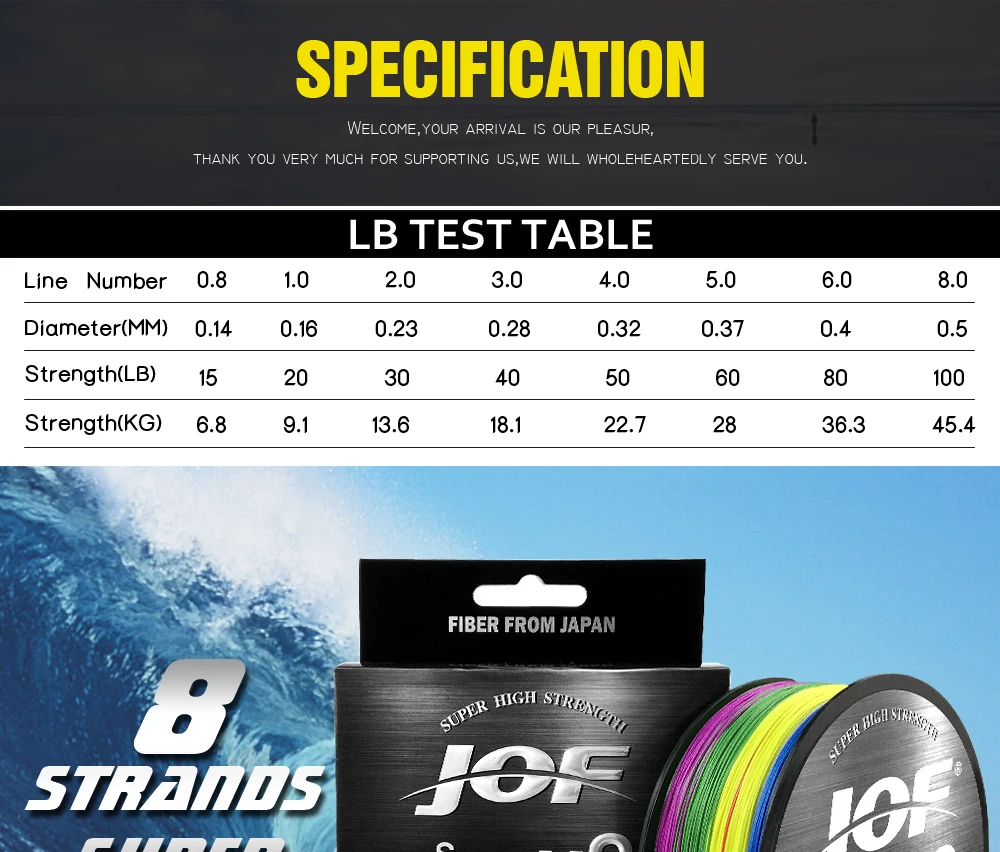 Примечание: номер лески не является диаметром, пожалуйста, внимательно изучите таблицу и, пожалуйста, оставьте нам сообщение, если что-то не так, спасибо!