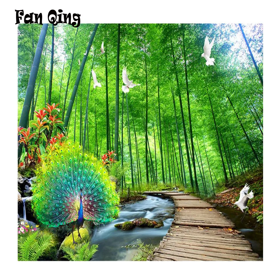 5D DIY Алмазная картина бамбук лес белый голубь и Павлин мозаика Алмазная вышивка полностью квадратные Стразы домашний Декор подарок