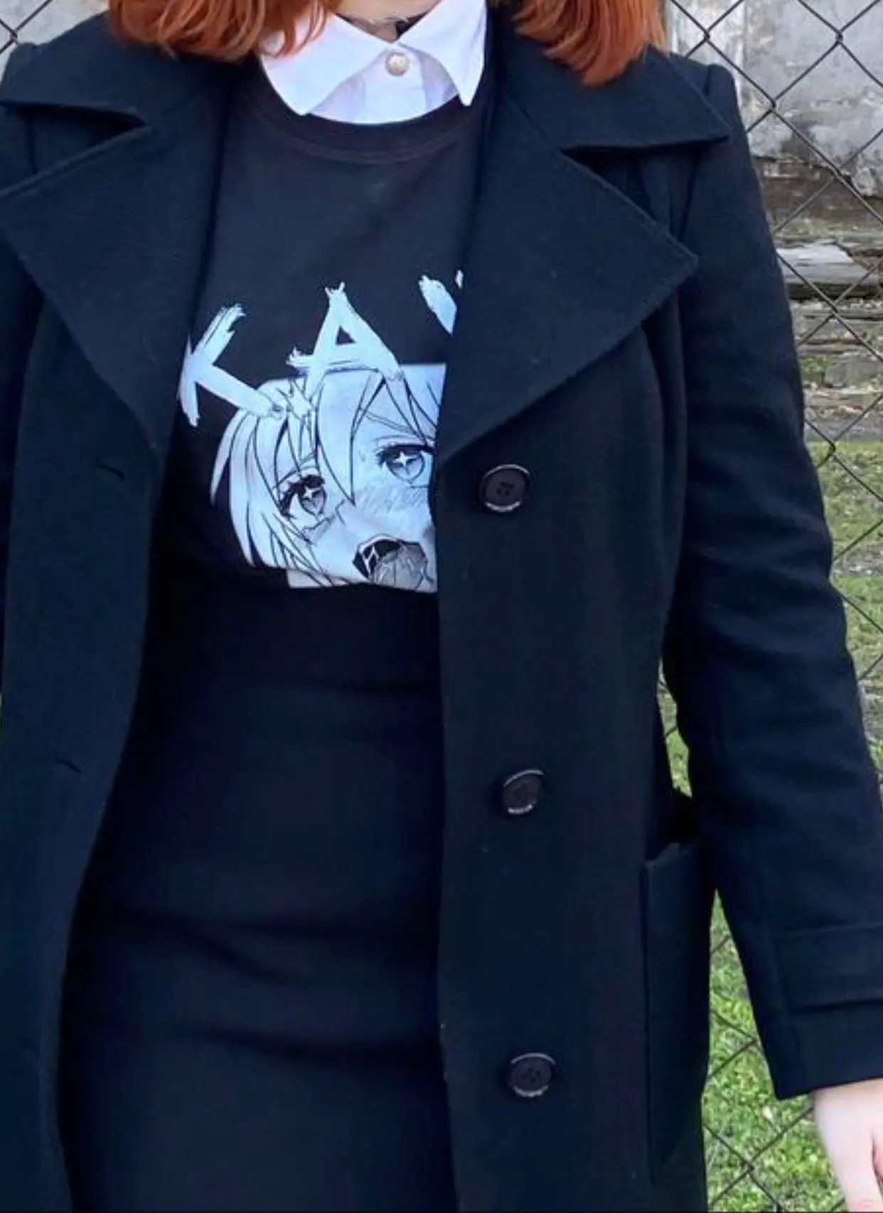 Крутая футболка. Очень хорошее качество печати. Скорее всего будет носить парень, так как на мне из-за груди странновато смотрится рисунок. Размер отличный, футболка чуть свободна, не сковывает движения. Запах обычный как от одежды в магазине. Постирать надо перед ноской(лучше не рисковать и стирать со светлой одеждой)