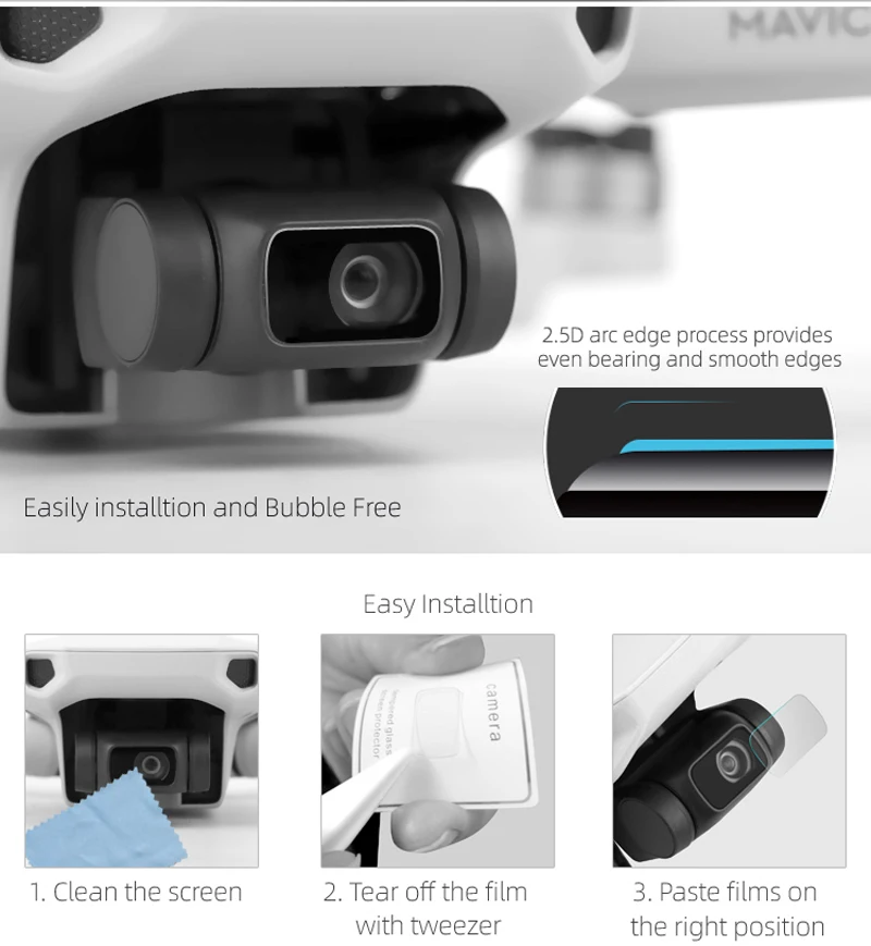 Этот продукт является Sunnylife специально дизайном для DJI Mavic Mini Lens.Используйте стекло твердостью 9 HЗащита от царапин, отпечатков пальцев и ВзрывозащищеннаяПолное покрытие объектива с точным вырезомЛегко устанавливается и без пузырей.
