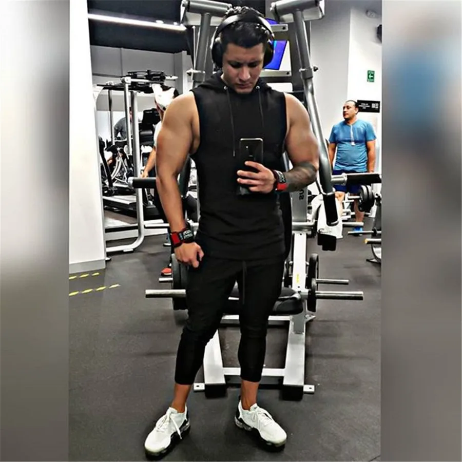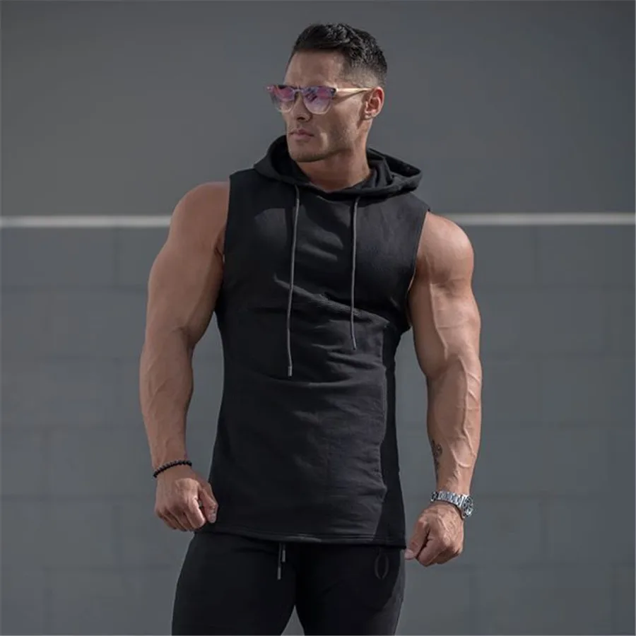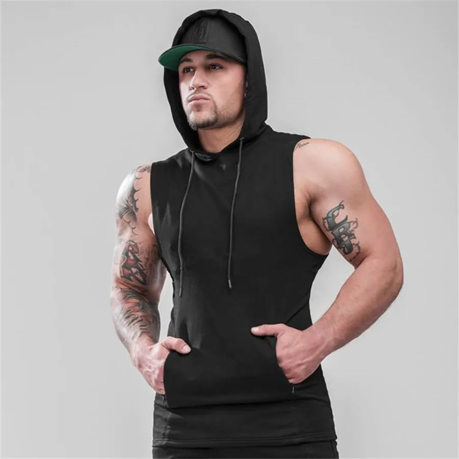 Осень 2020, мужская Толстовка без рукавов, черная и красная хлопковая толстовка с принтом, Повседневная модная толстовка с круглым вырезом для фитнеса, размер M-XXL