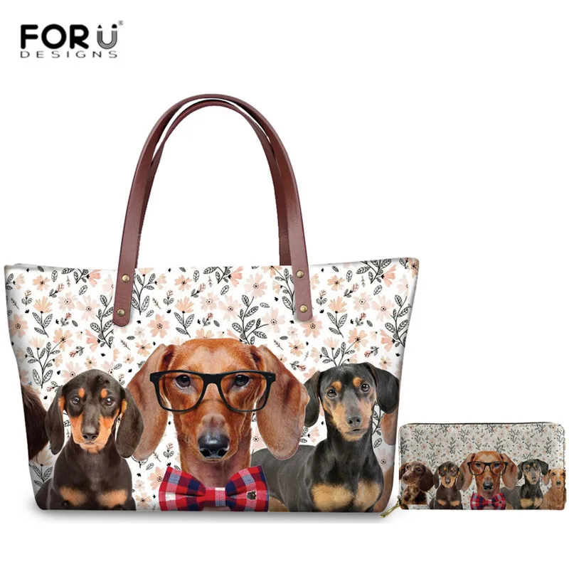 Комплект сумок FORUDESIGNS с 3D рисунком таксы для селфи, женская сумка через плечо с изображением животного и собаки, роскошный дизайн, вместительные сумки-тоуты