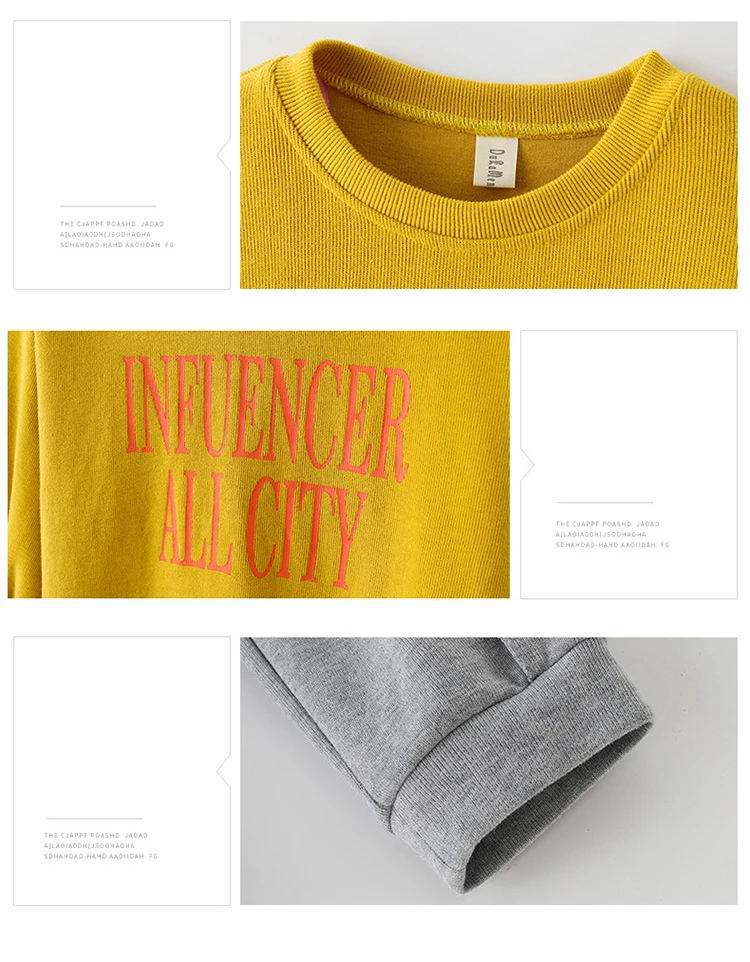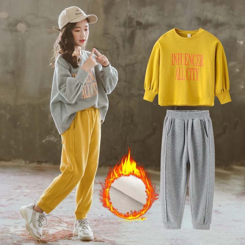 Спортивные костюмы с длинными рукавами для девочек 10-12 лет, комплекты повседневной спортивной одежды для девочек-подростков, комплект из 2 предметов, желтый свитер, штаны