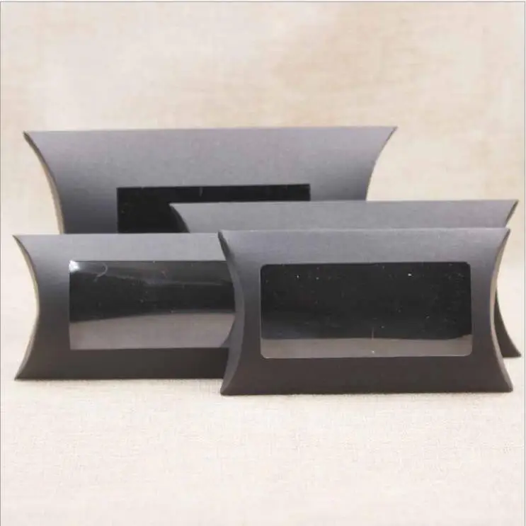 DIY пустые коричневые/белые/черные бумажные подарочные коробки, маленькие подушки, коробка конфет с прозрачным ПВХ окном, коробки для окон из крафт-бумаги