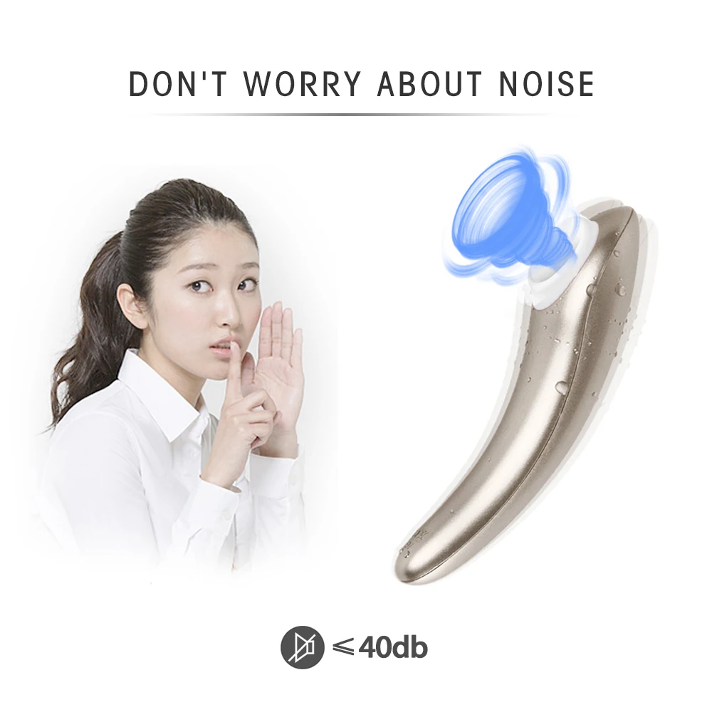 Всасывать не всасывает, работает по принципу вибрации мембраны. Жене понравилось.