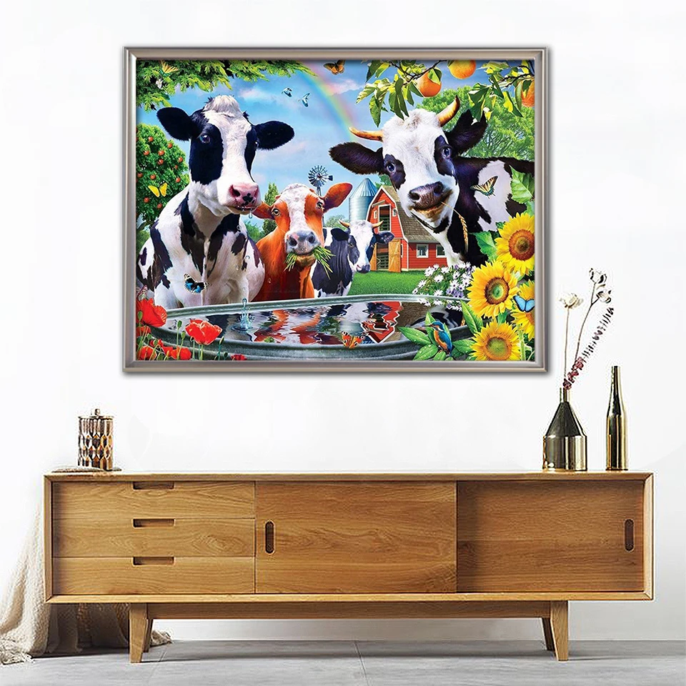 Алмазная мозаика, полный макет: Корова с алмазной вышивкой