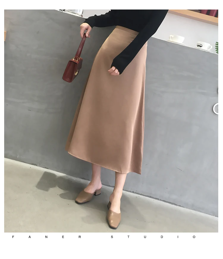 Женская элегантная офисная Высококачественная блестящая атласная юбка, простые блестящие модные однотонные женские юбки с высокой талией