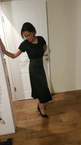Заказала сразу две юбки: чёрную и бежевую. Качество хорошее, юбки выглядят красиво. Обе размера S. Советую всё-таки брать M, если у вас широкие бёдра (как у меня), на параметры (65-92-168) сели в обтяжку. Заказ 23/09, доставка 12/10
