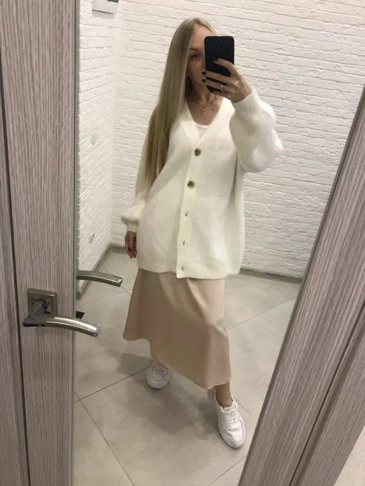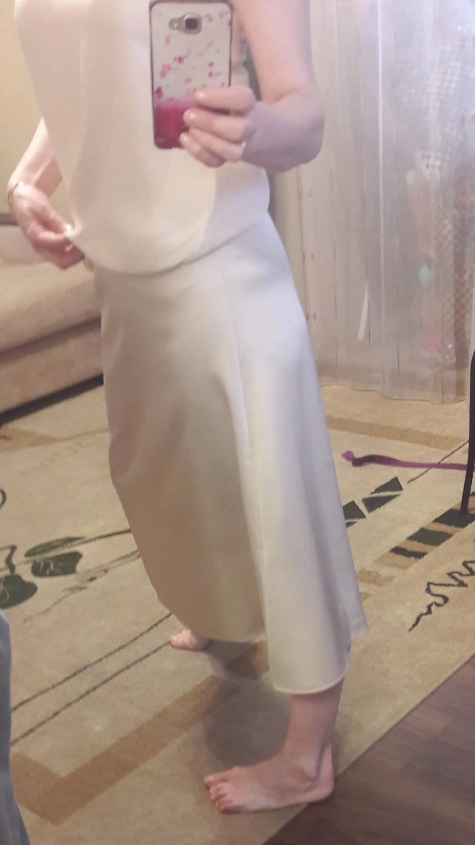 Юбка просто супер! Сшита очень качественно! Молочный оттенок с золотистым отливом