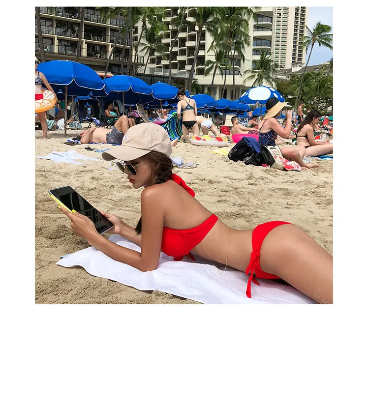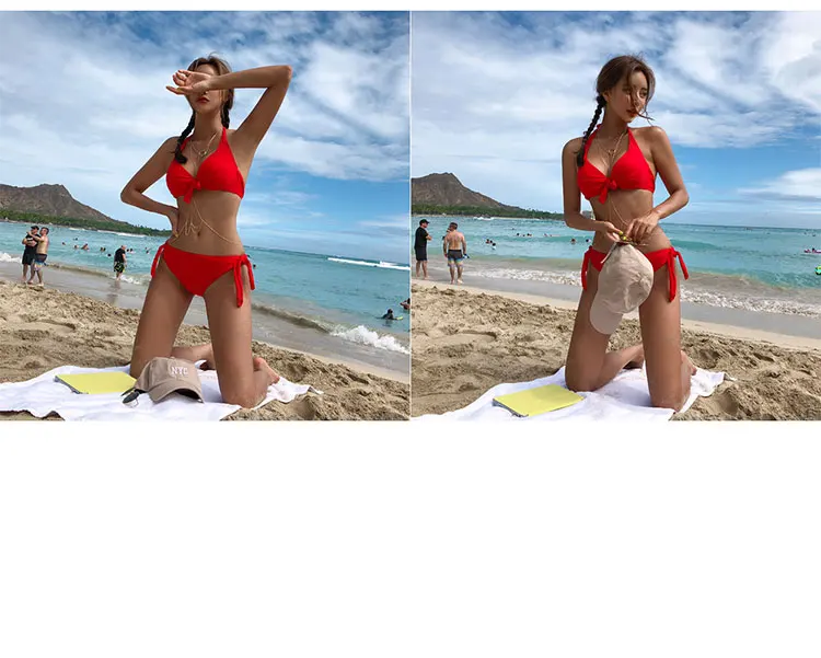 Женский раздельный купальник, однотонный комплект бикини в Корейском стиле, 2020