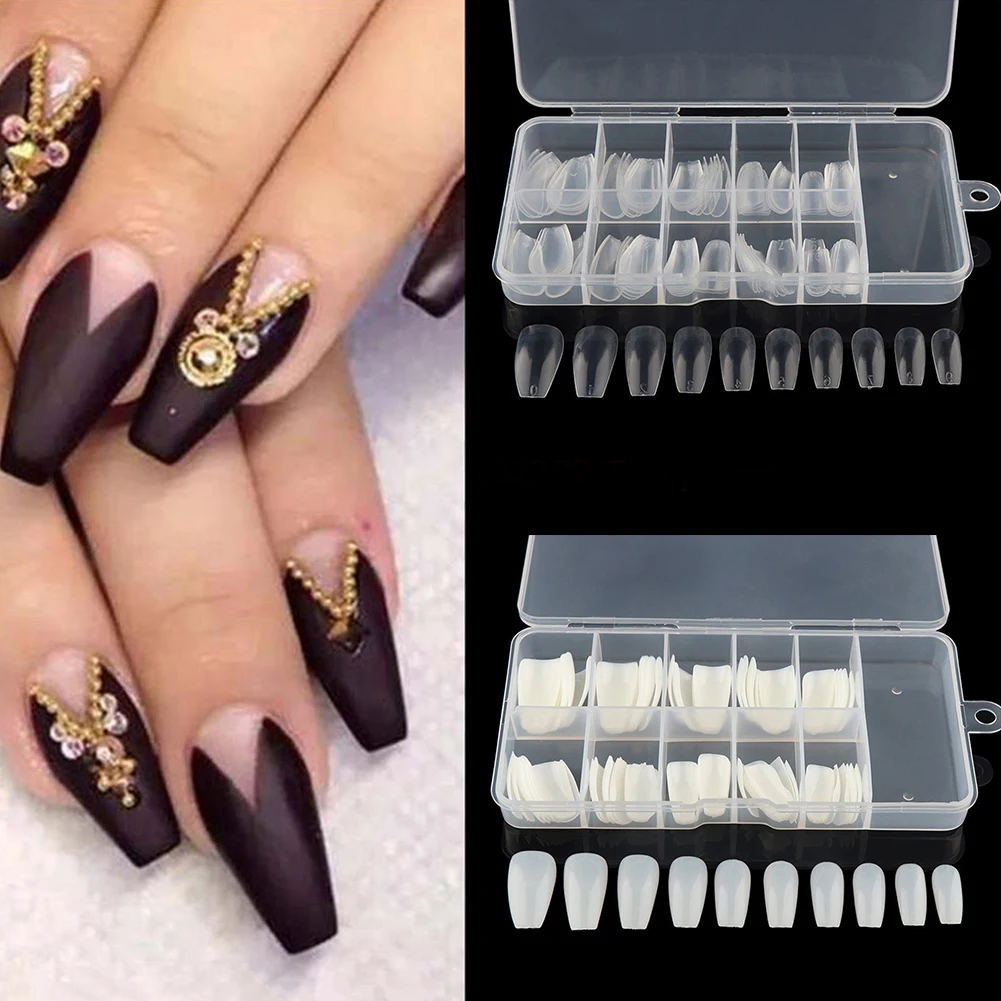 Длинные художественные наконечники, форма гроба, полное покрытие, искусственная Бриллиантовая имитация, инструмент для маникюра, дизайнерские аксессуары, накладные новейшие
