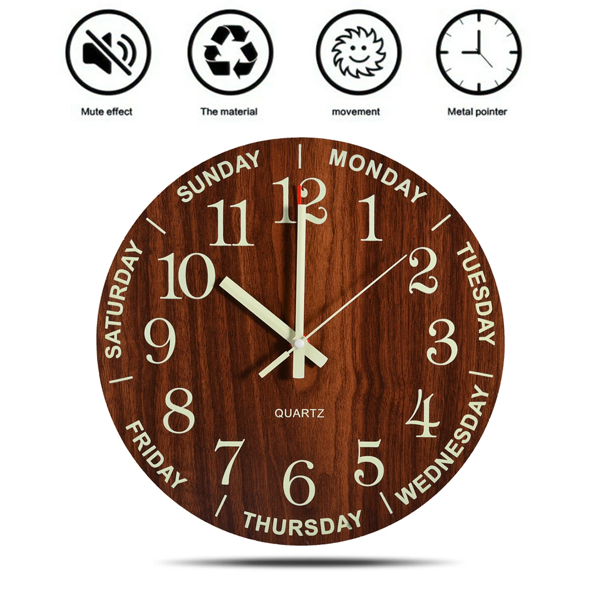 [Минимализм]: простой и современный дизайн будет выглядеть красиво в любой комнате. Он будет соответствовать всем вашим оформлением в вашего дома и офиса. Деревянное лицо со светящимися арабскими цифрами и неделей выглядит острым, даже несмотря на то, что ваш номер.