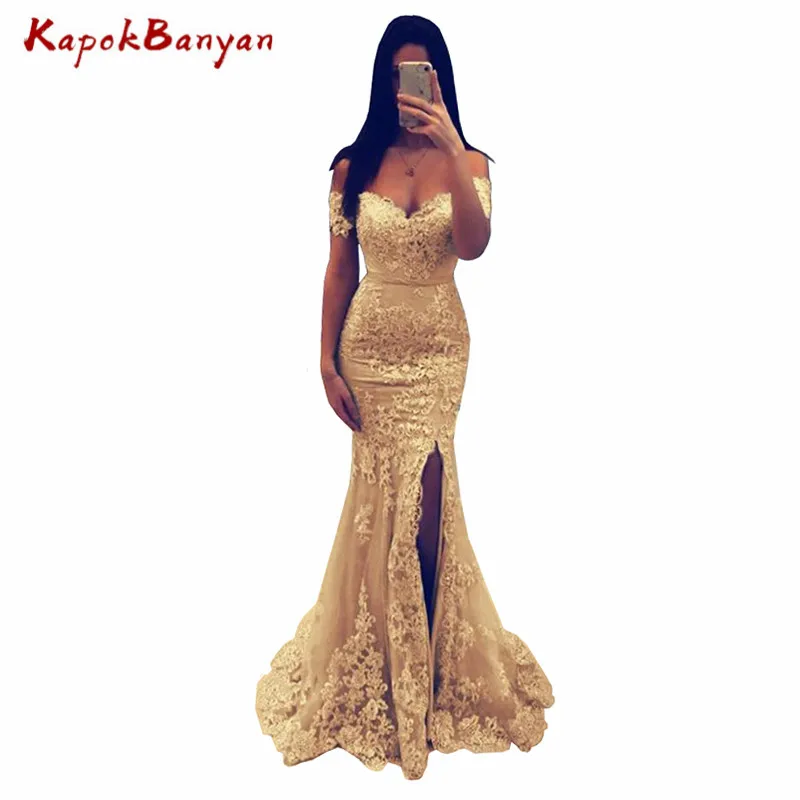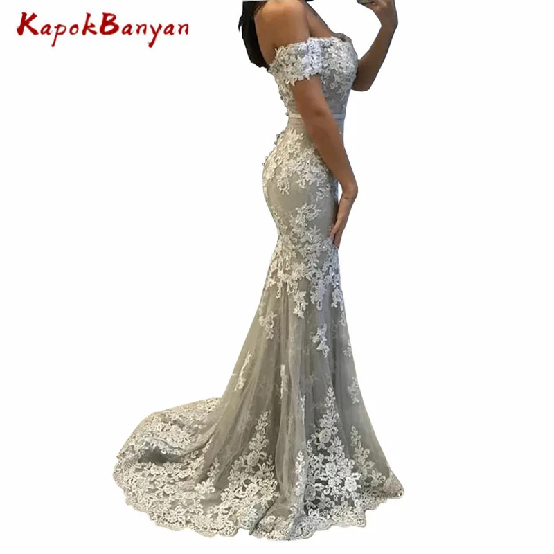 С открытыми плечами кружева Сплит Русалка платье выпускного вечера развертки поезд молния вечернее платье