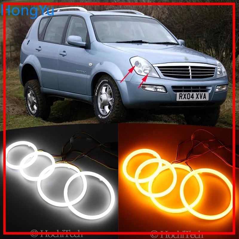 Хлопок горки светодиодный Белый Янтарь ангельские глаза гало кольца DRL сигнал поворота светильник для Ssangyong Rexton 2003 2004 2005