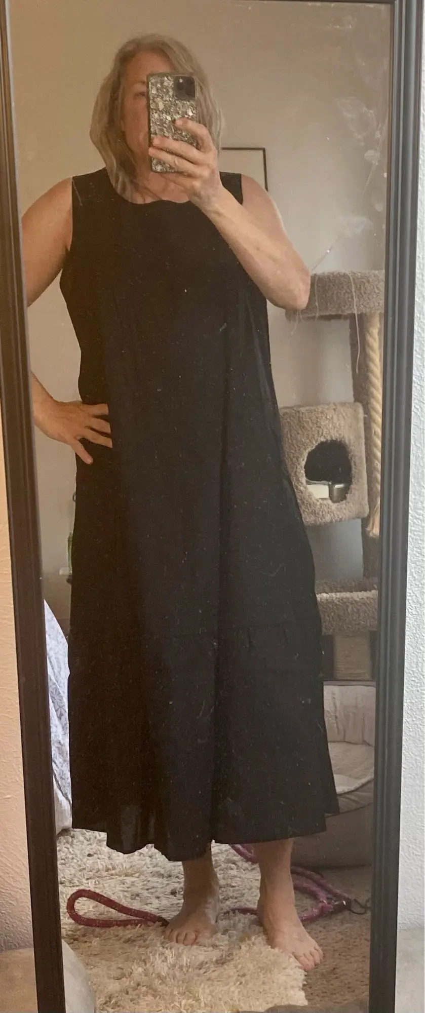Leuke jurk. 3 XL is wat aan de grote kant voor Maat 44, maar dat vind ik zelf niet zo erg. Stof is linnen mix. Hij is mooi gemaakt en ik ga hier veel plezier van hebben.