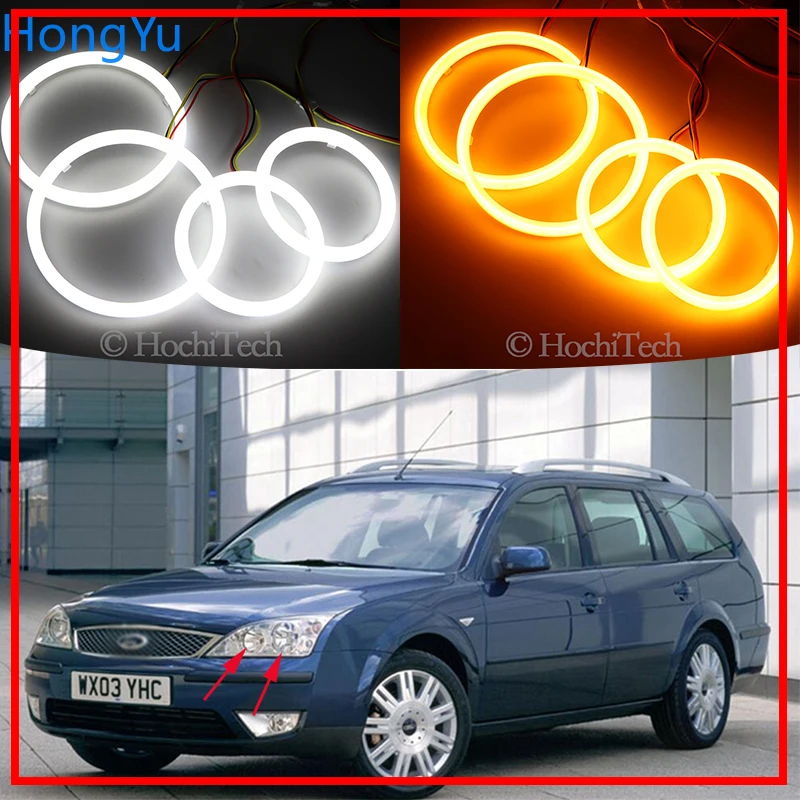 Хлопковые переключающиеся светодиодные кольца с белым янтарным ангельским глазом, дневные ходовые огни, указатели поворота для FORD Mondeo MK3 2001-2007