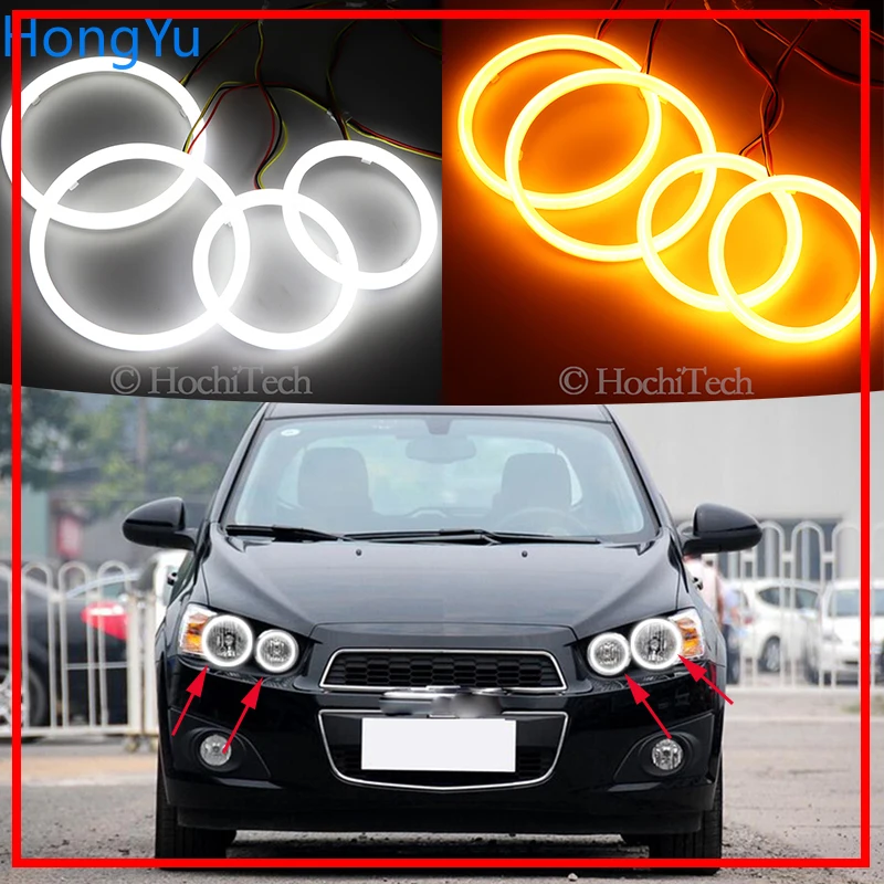 Хлопковые переключающиеся светодиодные кольца с белым янтарным ангельским глазом, гало, DRL, указатели поворота для Chevrolet AVEO Sonic T300 2011 2012 2013 2014