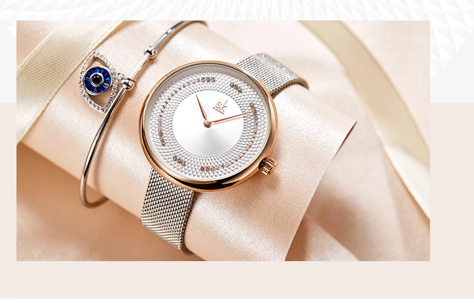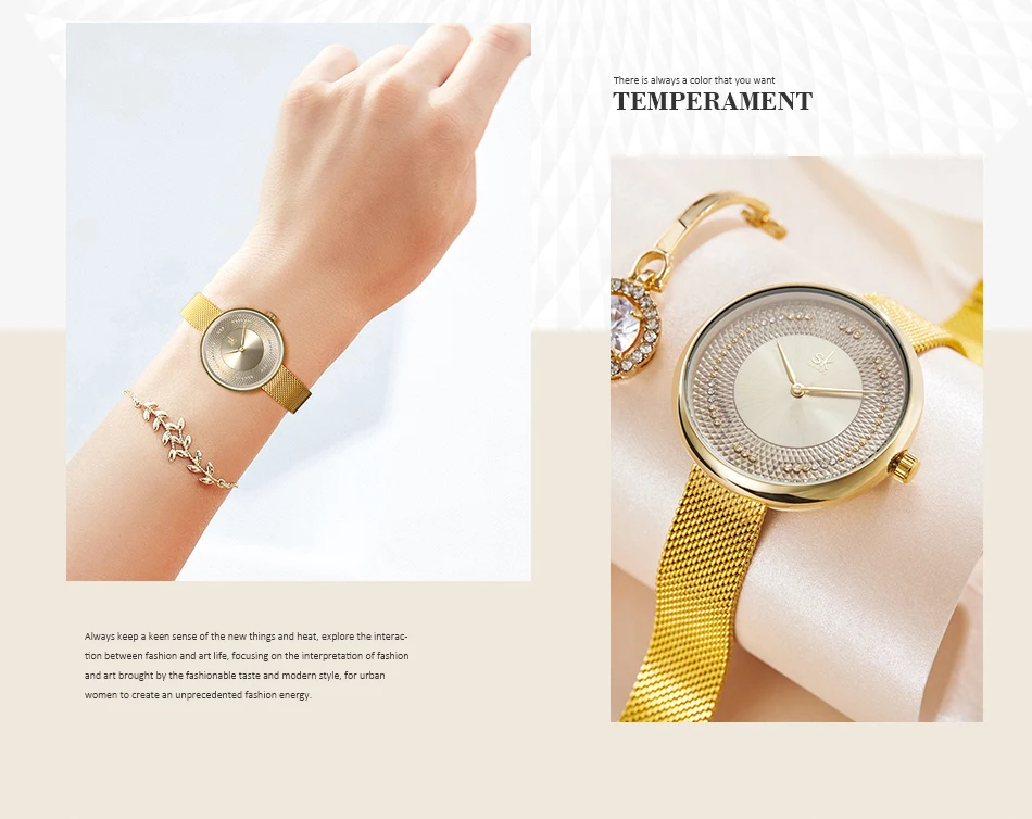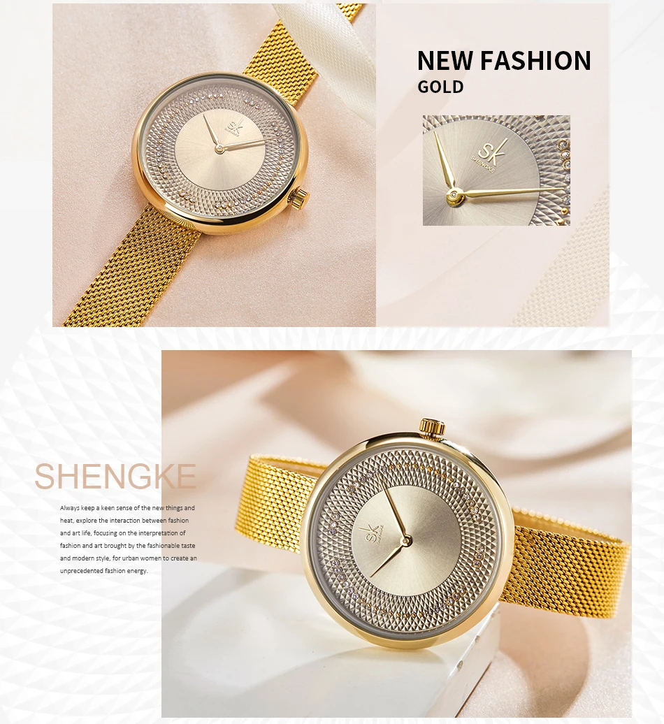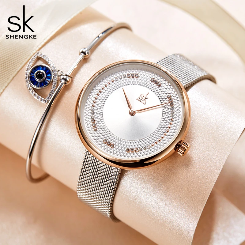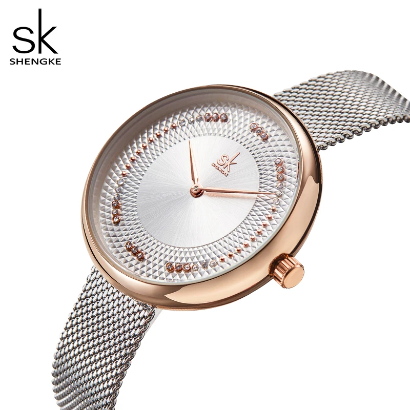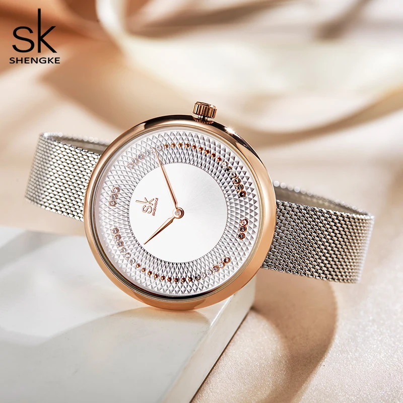 Часы SHENGKE женские кварцевые, модные брендовые Простые Дизайнерские повседневные деловые водонепроницаемые, стразы
