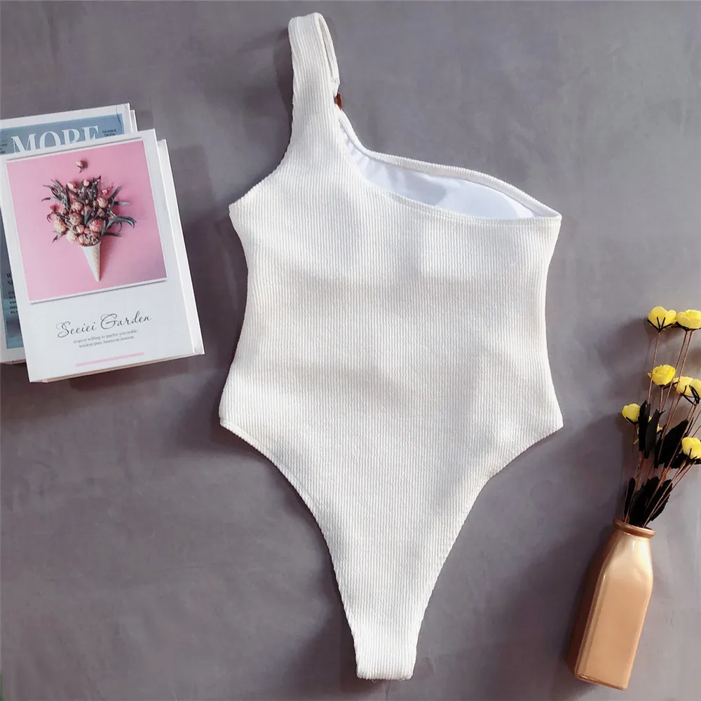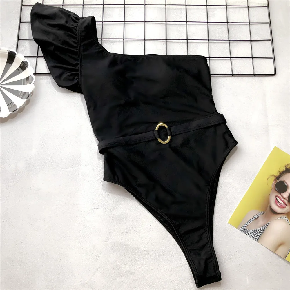Сексуальный купальник Melphieer на одно плечо 2020, трендовый женский черный купальник, Цельный купальник-бикини, купальный костюм с высокими штанинами