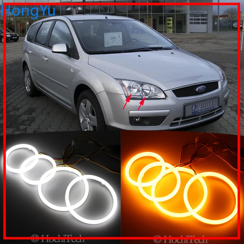 Хлопковый переключатель, светодиодный Белый Янтарный ангельский глаз, кольца DRL, указатель поворота для Ford Focus II Mk2 2004 2005 2006 2007 2008
