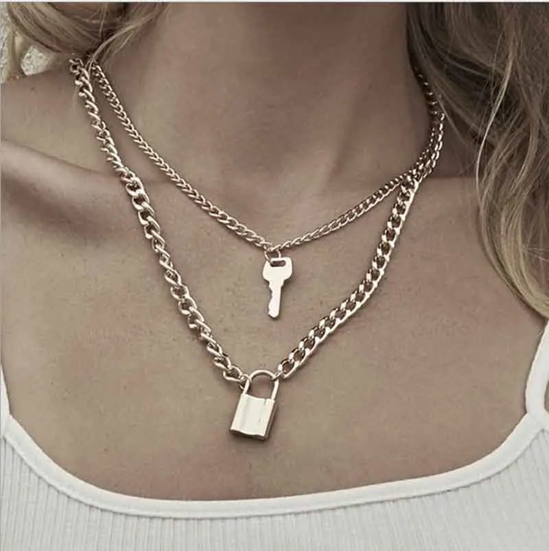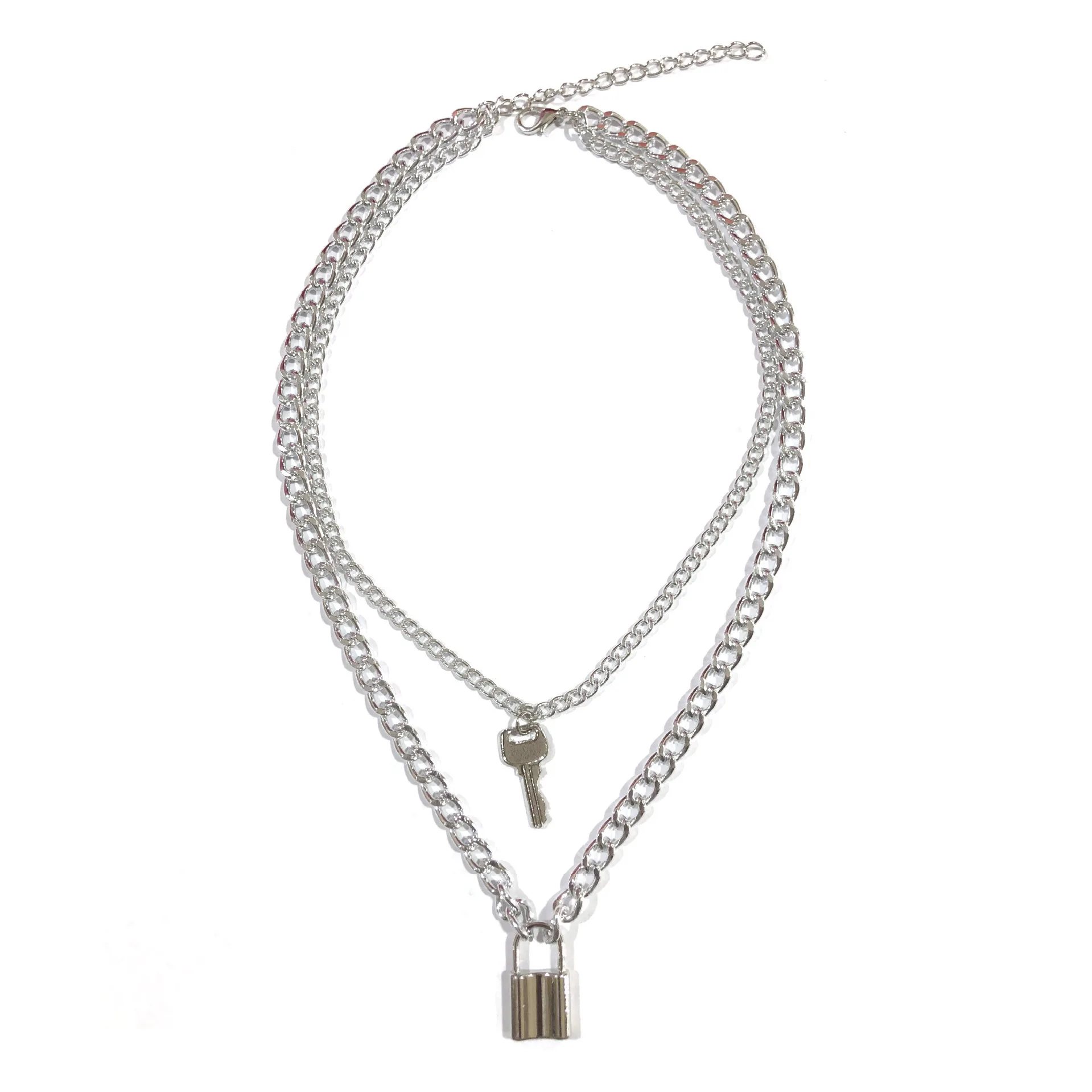 Цепочка с подвеской в виде висячего замка, серебристого цвета