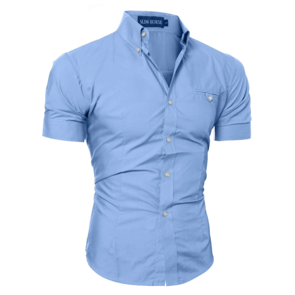 Рубашка мужская облегающая, однотонная, с коротким рукавом, деловая...