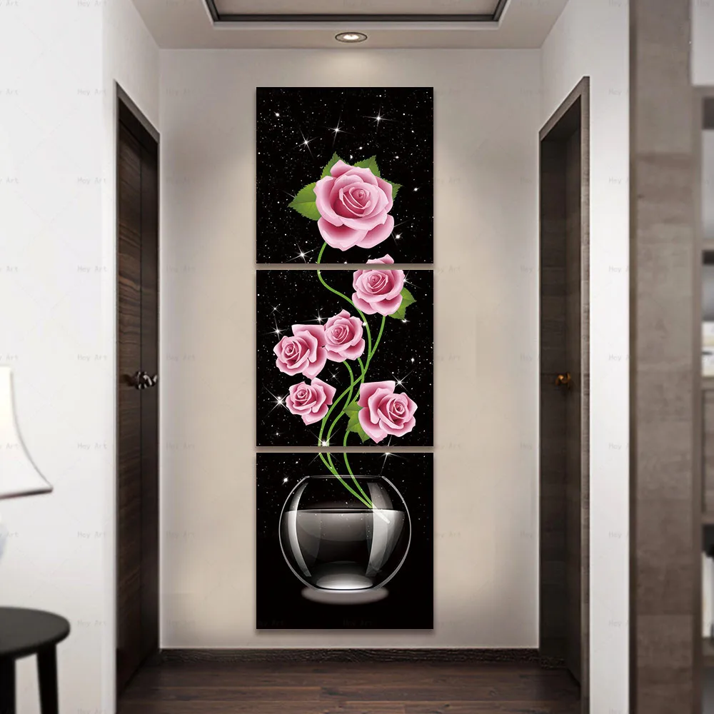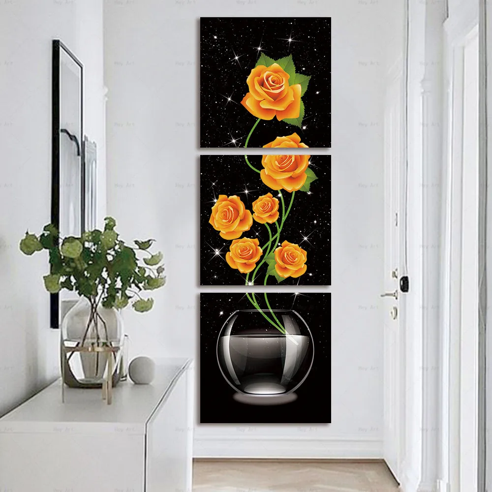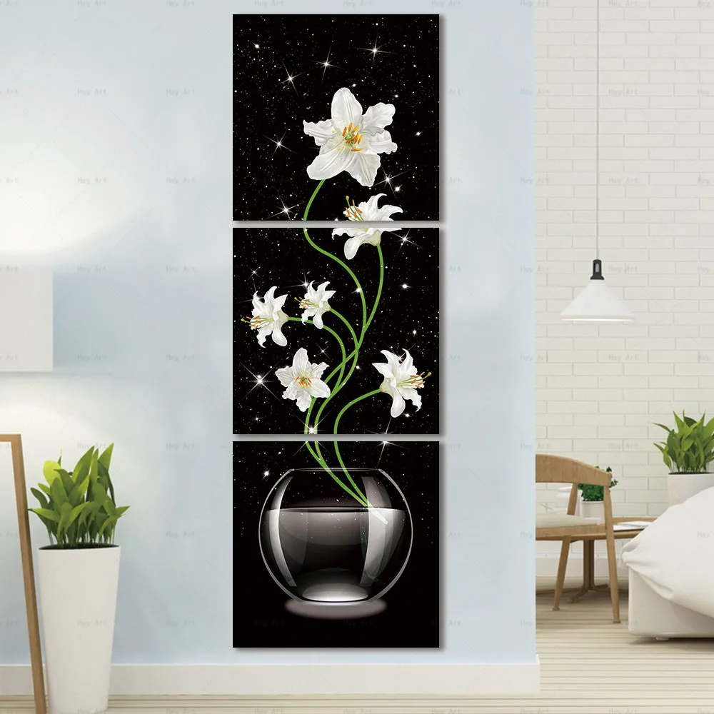 Картины с цветами, холст, домашний декор, 3 панели для плакатов, картины для гостиной