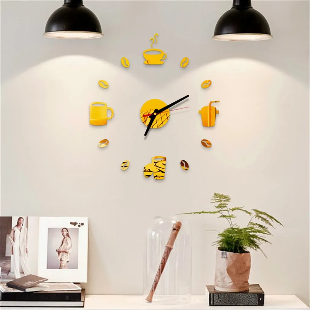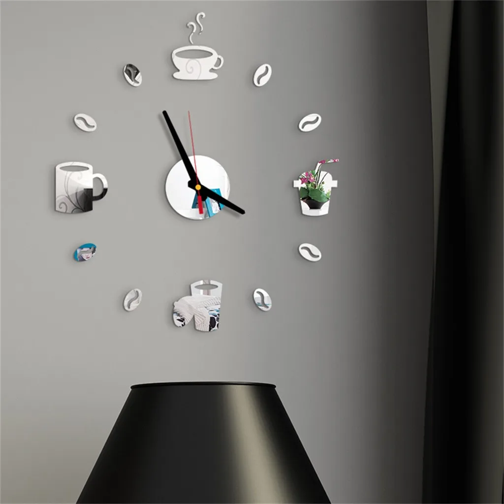 Большие настенные часы 3D для кафе, сделай сам, безрамные гигантские настенные часы, современный зеркальный декор для кофейной комнаты, настенные часы для кухни # AF