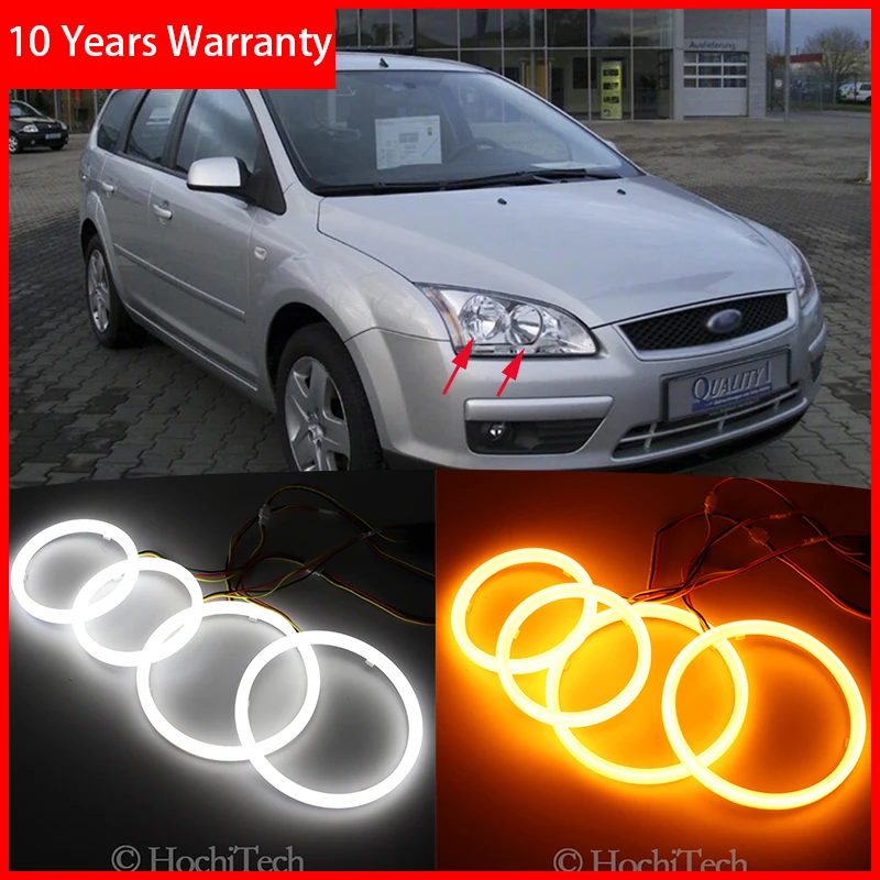 Хлопковый переключаемый светодиодный Белый Янтарный ангельский глаз кольца с ореолом DRL светильник воротный сигнал для Ford Focus II Mk2 2004 2005 2006 2007 2008