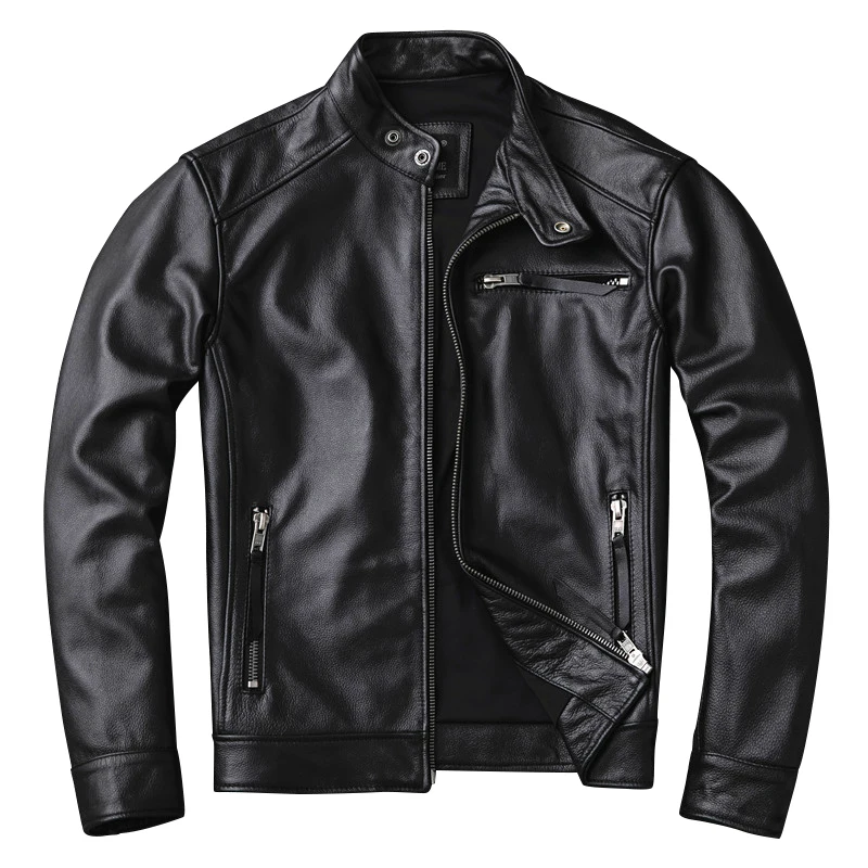 Куртка AYUNSUE KJ4114 мужская из натуральной воловьей кожи, мотоциклетная кожаная верхняя одежда, Байкерский стиль
