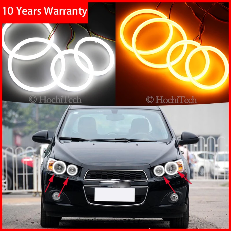 Хлопковый переключатель, светодиодный Белый Янтарный ангельский глаз, кольца DRL, указатель поворота для Chevrolet AVEO Sonic T300 2011 2012 2013 2014