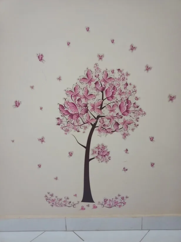 Наклейка на стену с розовыми бабочками, цветами, фон для спальни, гостиной, декоративные обои