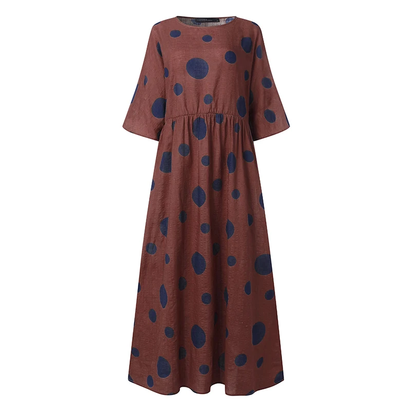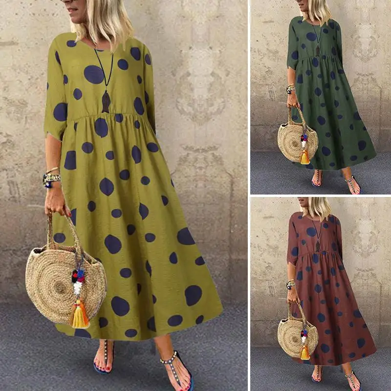 Платье ZANZEA женское длинное с принтом, повседневный кафтан, туника с рукавом 2021, плиссированный халат, лето 34