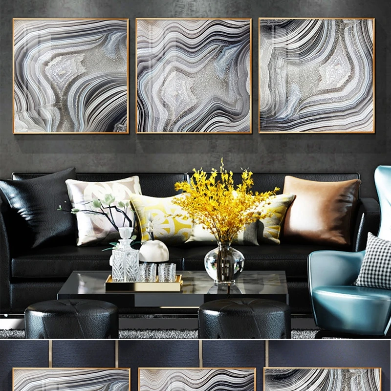 Современный абстрактный постер на холсте, Серый Мраморный принт, Мр...