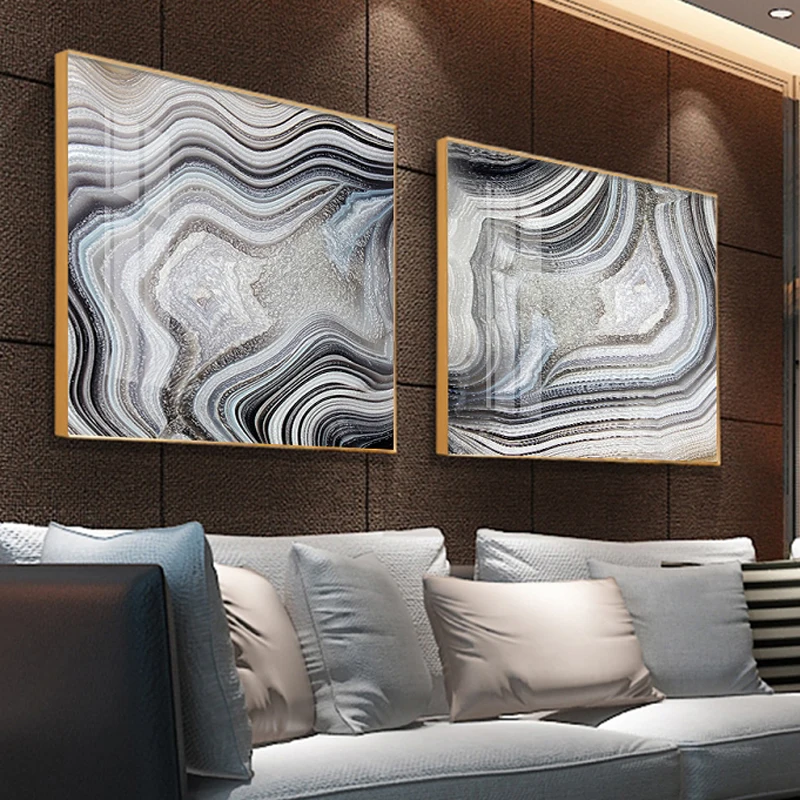 Современный абстрактный холст с синим мраморным рисунком, настенные...