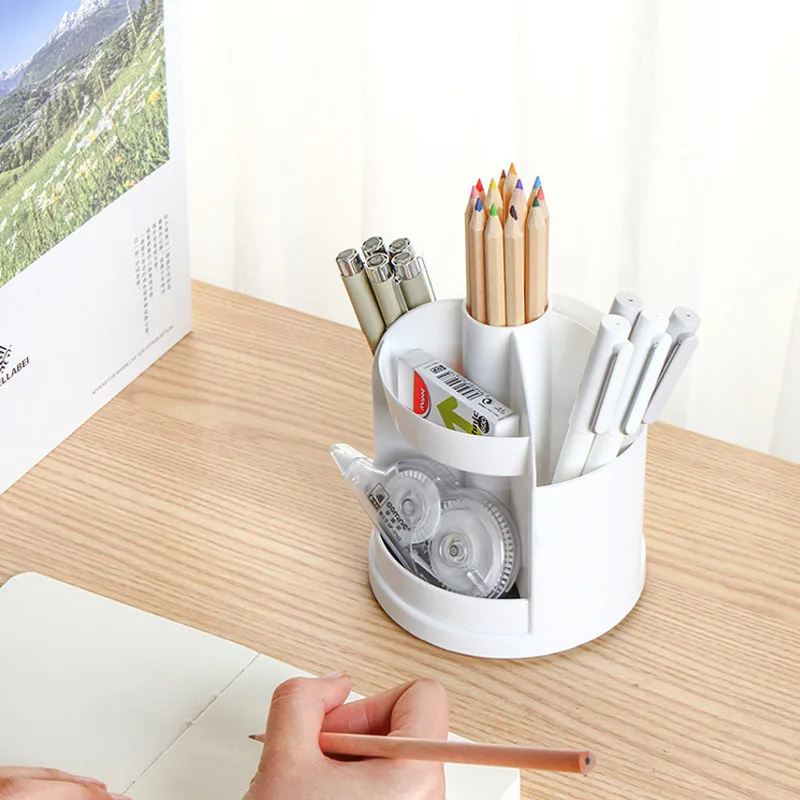 Kawaii Большой Ёмкость вращающийся настольная подставка для ручек карандаш макияж ящик для хранения настольный органайзер подставка чехол школьные канцелярские принадлежности