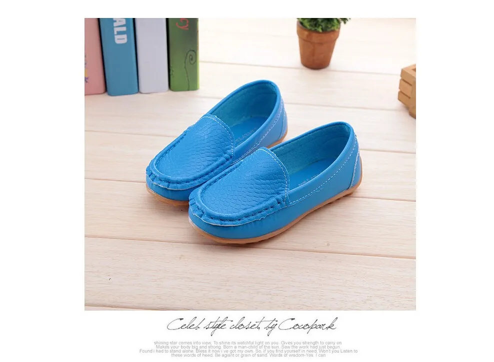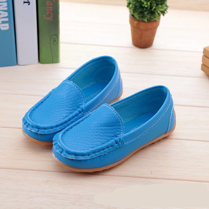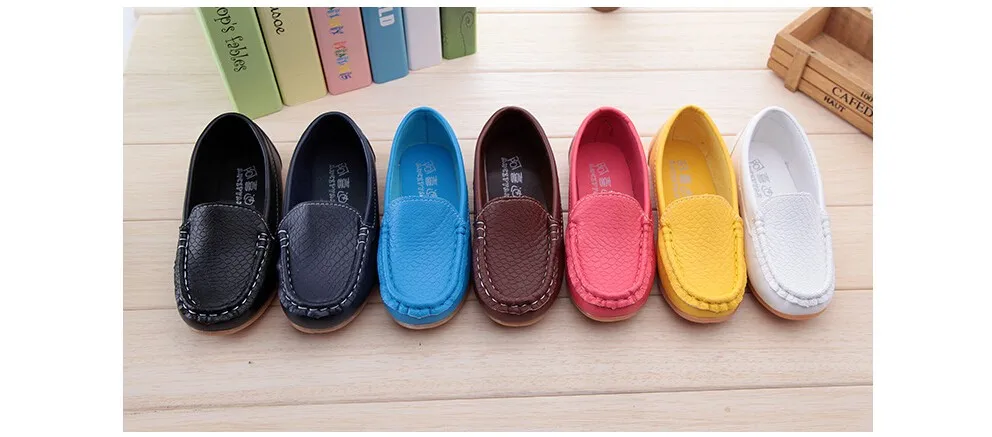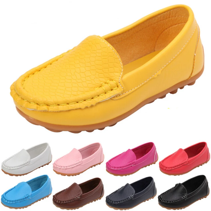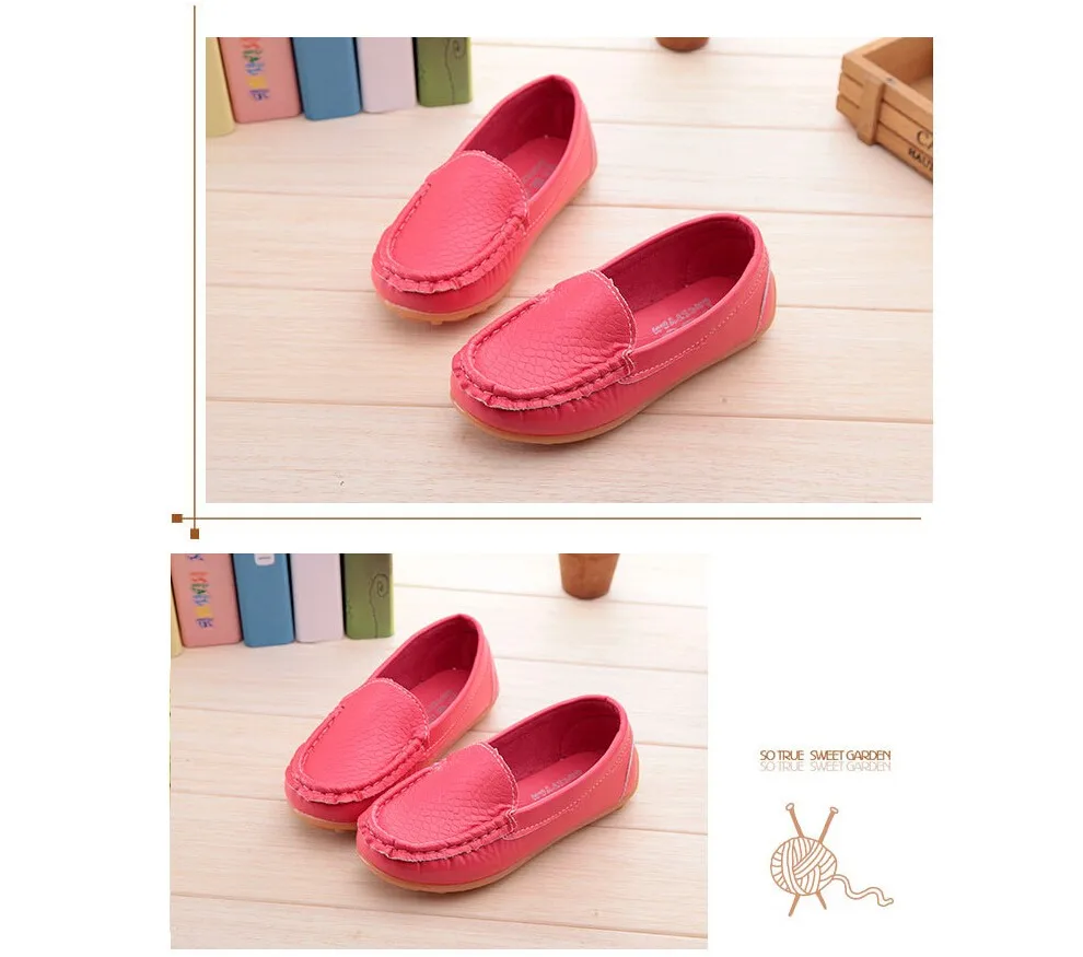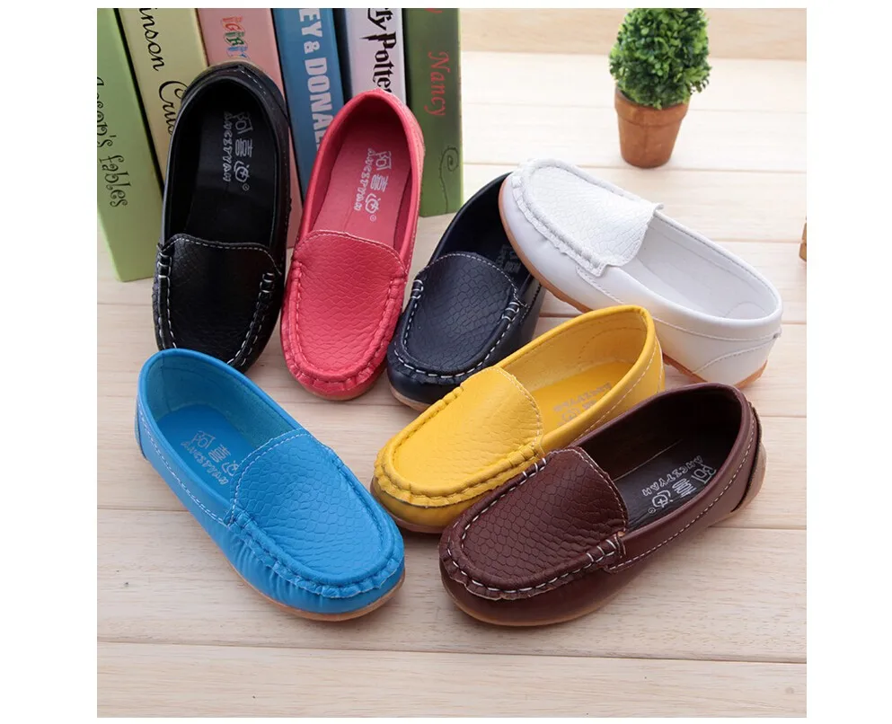 Туфли детские из экокожи, повседневная удобная обувь, лоферы, без застежки, все размеры 21-36, 12 цветов
