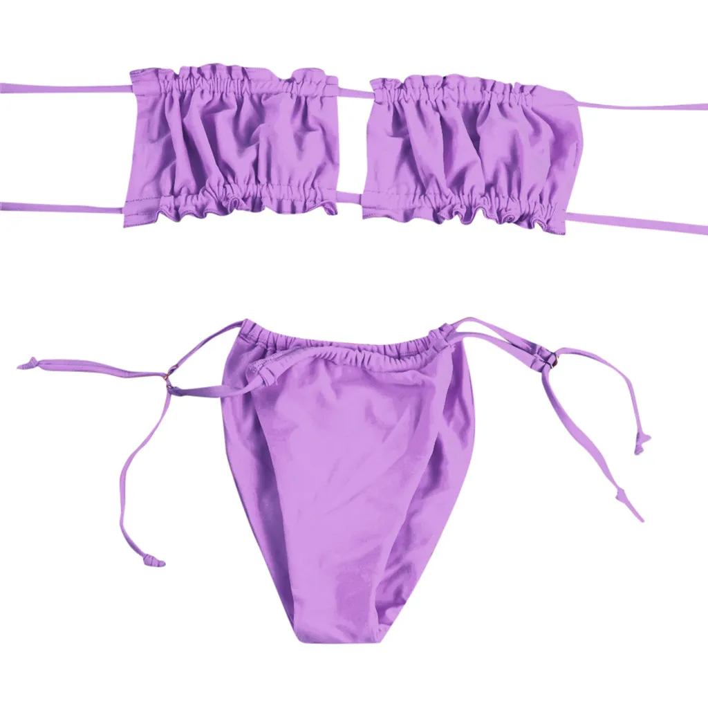 Женский бандо бандажный комплект бикини пуш-ап бразильский купальник пляжная одежда купальник с высокой талией бикини однотонные бикини для женщин # H