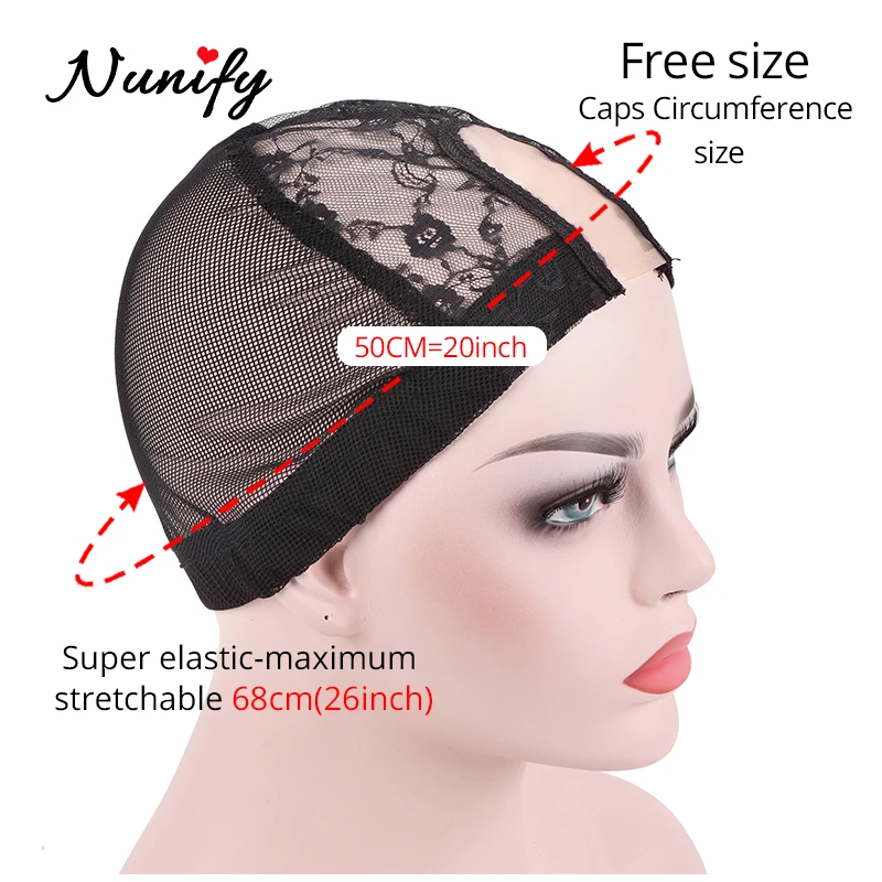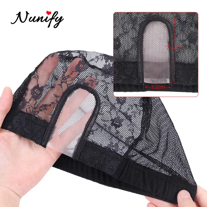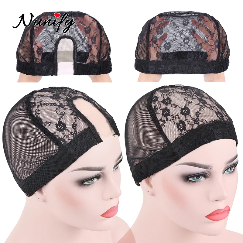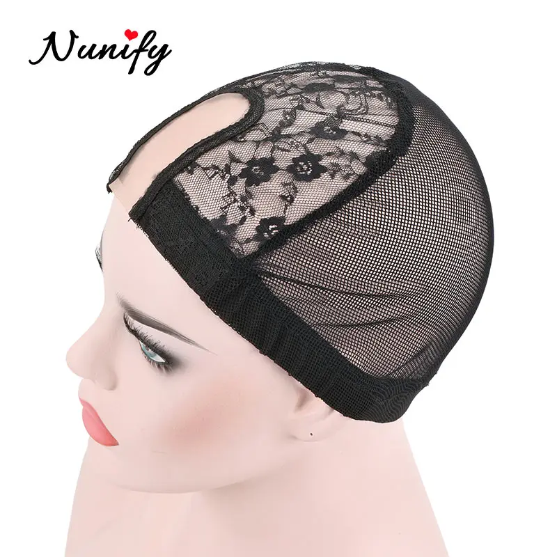 U-образная шапочка для парика Nunify, 1 шт.лот, для изготовления париков с ремешком свободного размера на спине, плетеная шапочка, вентиляционная сетка для волос черного цвета