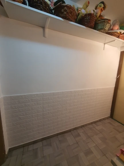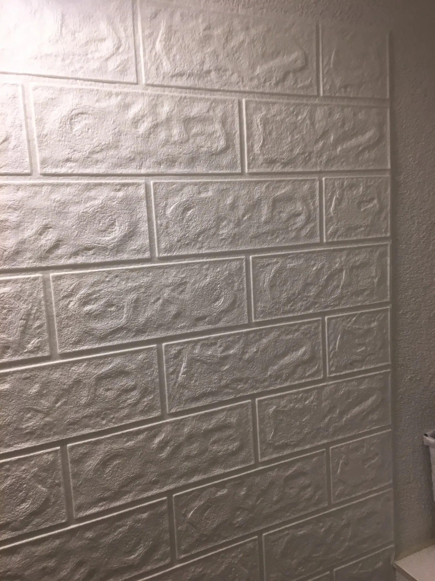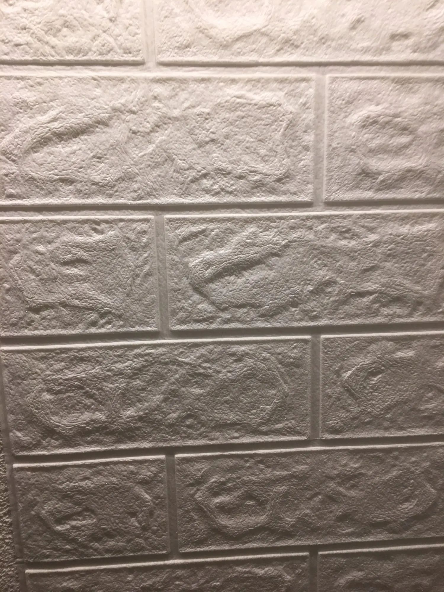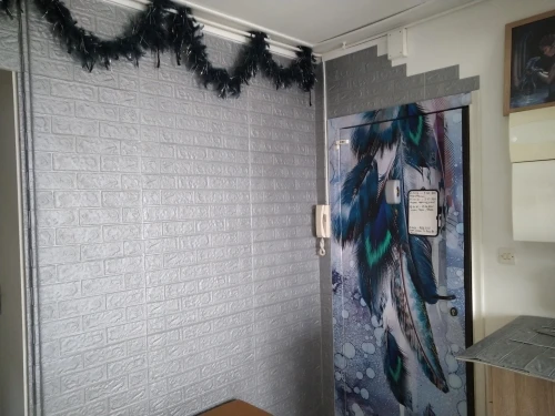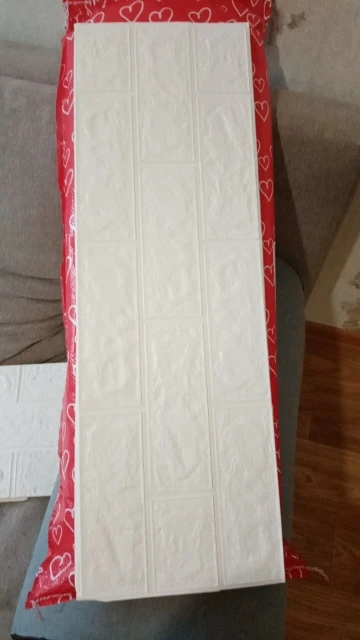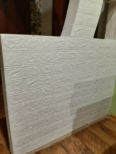 Обои великолепные. У меня арка из фанеры, я ее чем только не декорировала. Эти обои - лучший вариант. Толщина примерно 2-3 мм, мягкие, как резиновая губка. Заклеивают мелкие неровности, некрасивые швы и стыки. Идеальный декор для моей арки! Доставка из России 1 неделя, в упаковке 12 штук размером 70х75 см. Легко вырезаются ножницами. На фото недоклееный вариант!