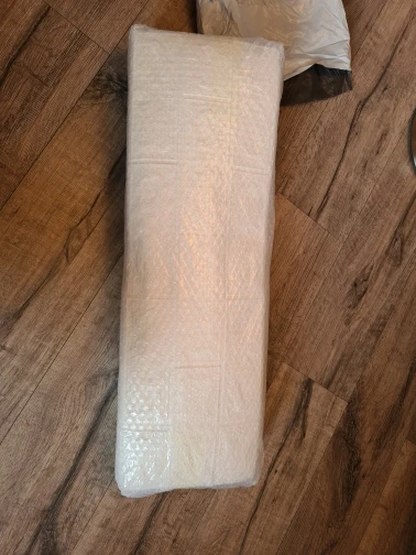 Конечно я ожидала немного другого качества товар. Плитки большие, но срез не у всех ровный и одни больше, а другие немного меньше. Этот нюанс виден только тогда когда начинаешь состыковываеть и подгонять друг с другом листы. По качеству - мягкий пенопласт, если есть кошки которые любят приложить когти, то после когтей быстро появятся оборонные полосы. Как долго будет держаться этот материал неизвестно, поживем- увидим.