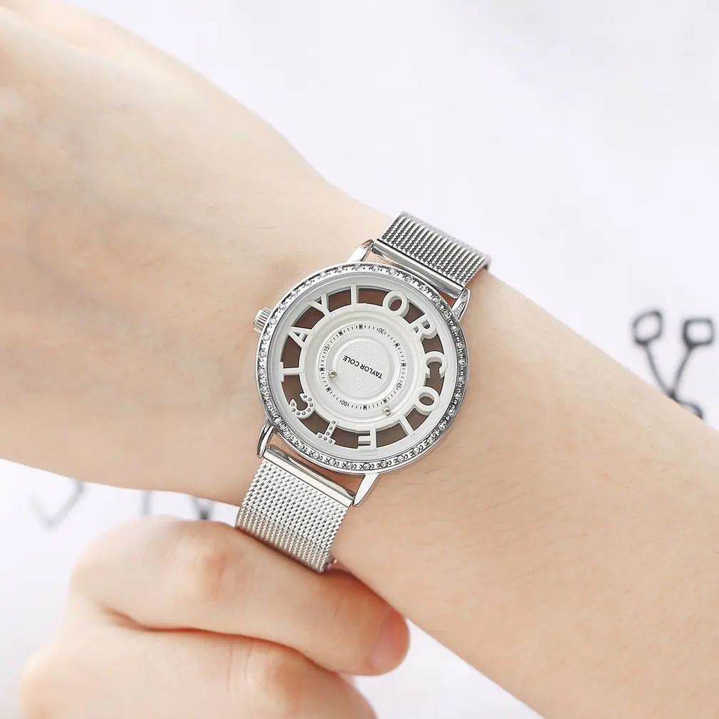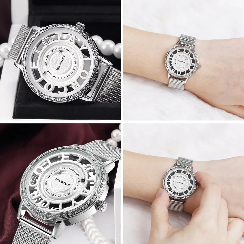 Стильные прозрачные стильные часы с уникальным логотипом, Роскошные Кварцевые часы с пряжкой из нержавеющей стали для Taylor Cole