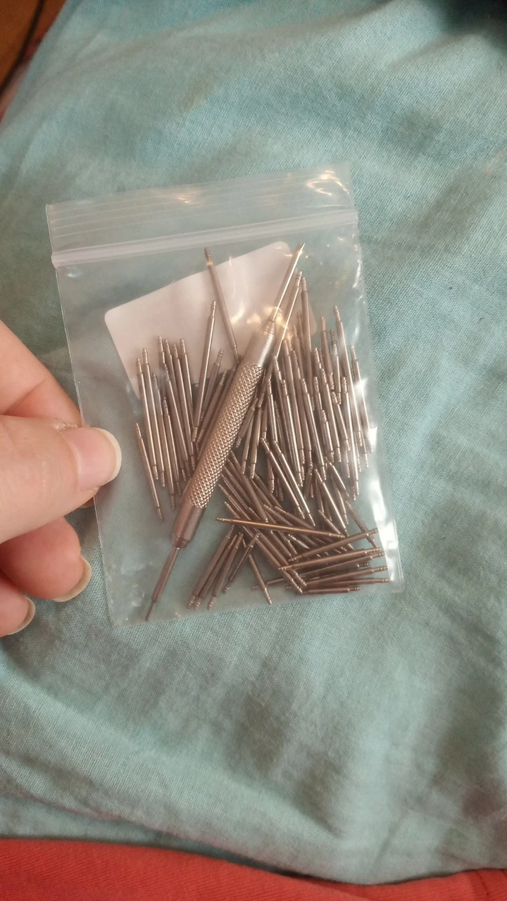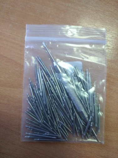 Заказ прибыл с опозданием на 2 недели. Качество... обычный ширпотреб, ни чего особенного. Один штифт полностью нерабочий (без пружины и боковых ригелей). Инструмент погнут, но это легко поправимо. Другое дело, что зацепить им штифт абсолютно невозможно: выемка просто не подходит к форме штифта. Короче, есть и пусть лежат. Всяко дешевле, чем поштучно каждую за полтинник брать в ближайшем магазине.
