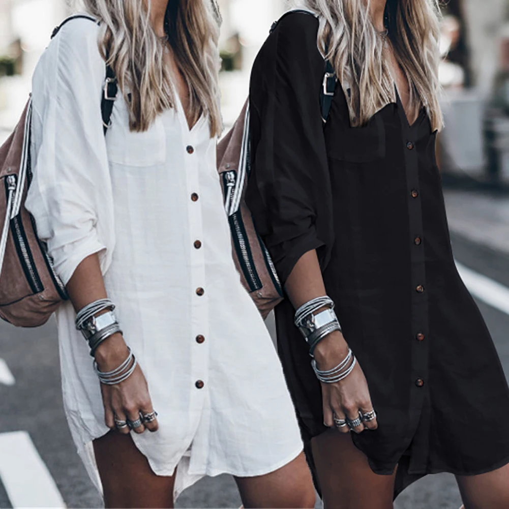 Блузка женская летняя, с V-образным вырезом и длинным рукавом