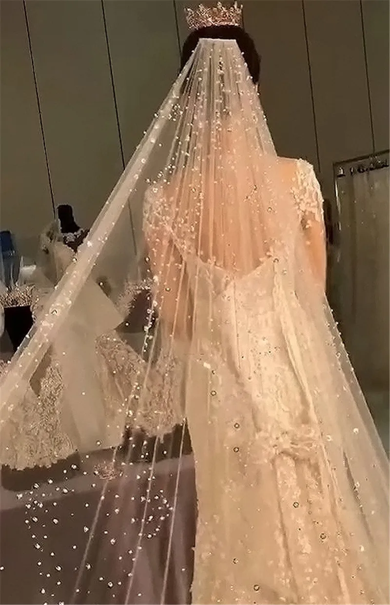 Длинная свадебная фата с бисером Bling Стразы, свадебный головной убор для невесты Среднего Востока из Дубая, роскошная Фата с расческой