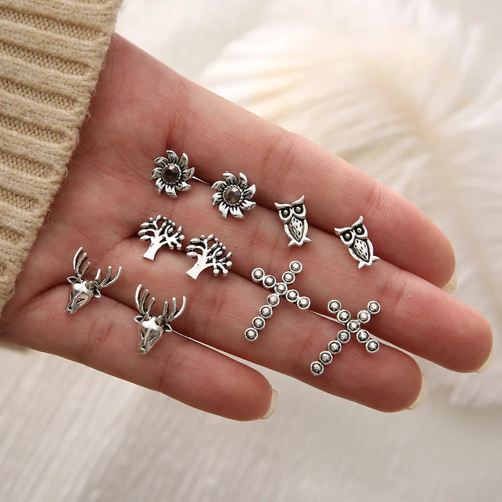 Набор женских серег-гвоздиков, с кристаллами, Сова, змея, Лунная ракушка, 30 видов