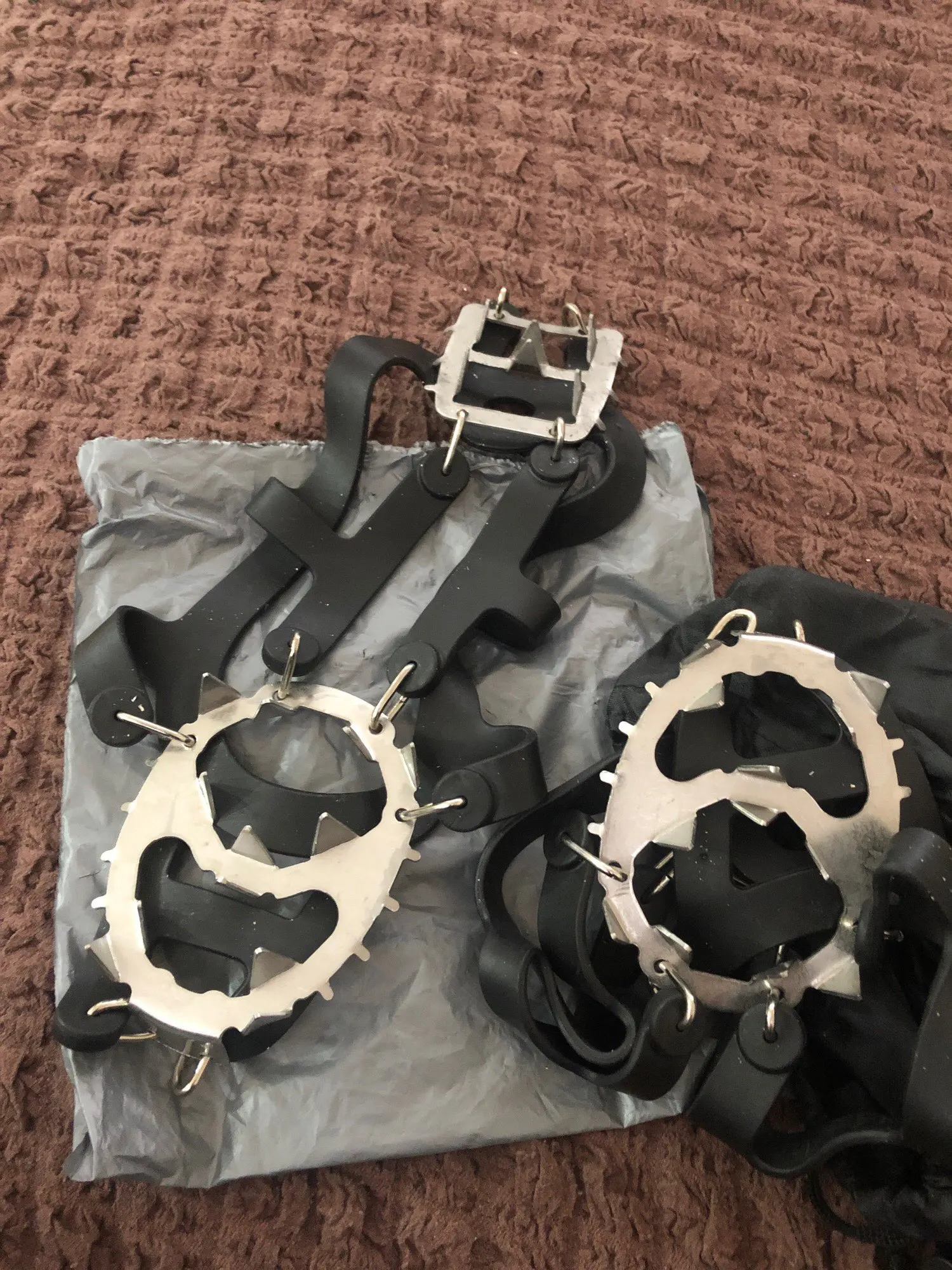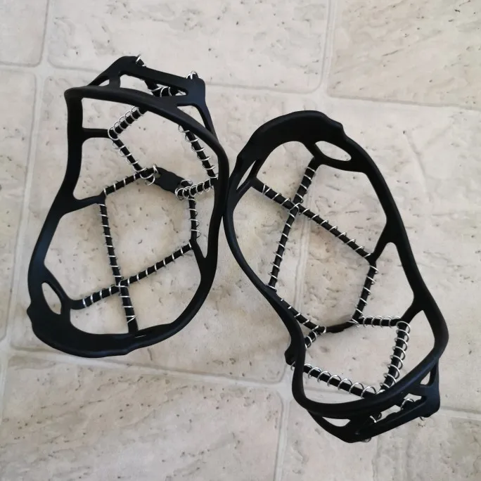 Всем привет. Пришли эти ледоходы или хз как их назвать ) и первое впечатление лучше,чем ожидал. Из-за качества,думал будет совсем дишман. Но,врать не буду,не носил на улице,весь лёд снегом занесло. Так что обязательно будет доп отзыв. Выбрал такие,начитался отзывов за другие модели,ну у них и площадь маленькая,или на пятке или на передней части ноги эти кнопки,которые вылетаю после одной носки из резины. Здесь же и вылететь то нечему и эти пружины по всей стопе. Брал оба размера. Поменьше на 26 см влёгкую налезли,есть запас. Большой на 32 см,тоже скажу ,что есть запас,резина тянется как ни как.