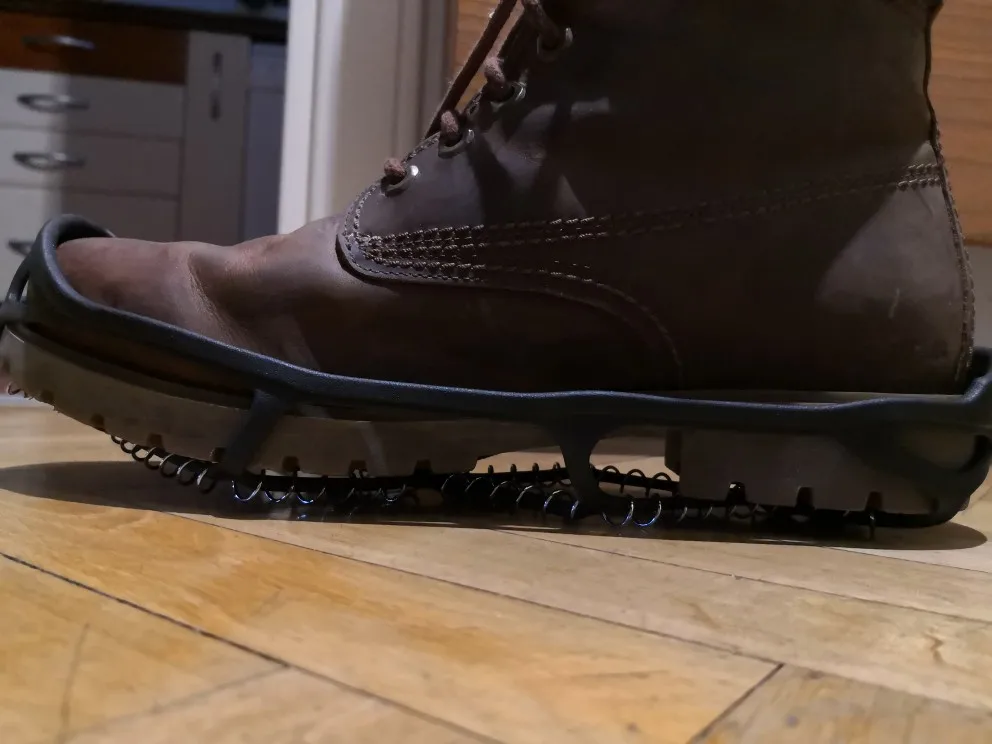 Прошлогодние криптоны зиму прослужили нормально, правда в одном месте держатель спирали порвался, но и так было нормально. На льду и наледи не скользили,хотя я и старался поскользить, деревянный пол в доме заметно не портили. На размер 43 (27,5) натянул с трудом на большие зимние сапоги с мехом от этого потом и порвались немного. Сейчас искал именно такие. Вцелом доволен.
