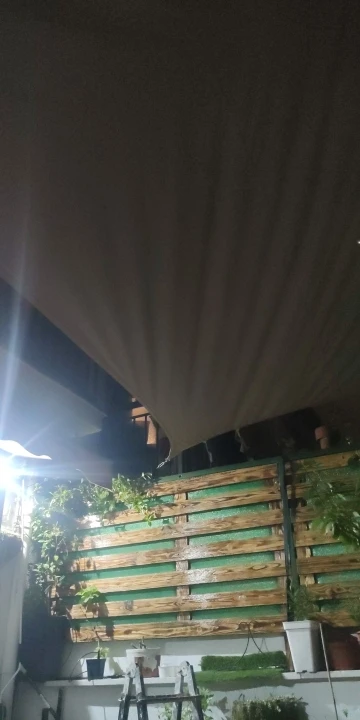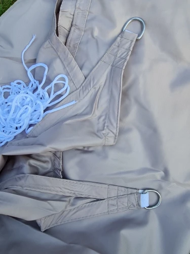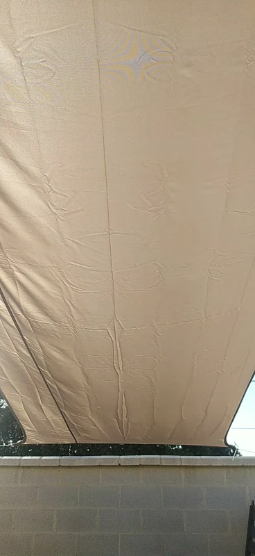 Заказанный размер был 2 на 4, полученный навес был получен размером 1,32 на 3,37, даже учитывая погрешность, которая есть в описании, это перебор. Имейте это ввиду при заказе. Ткань протекает в местах швов.