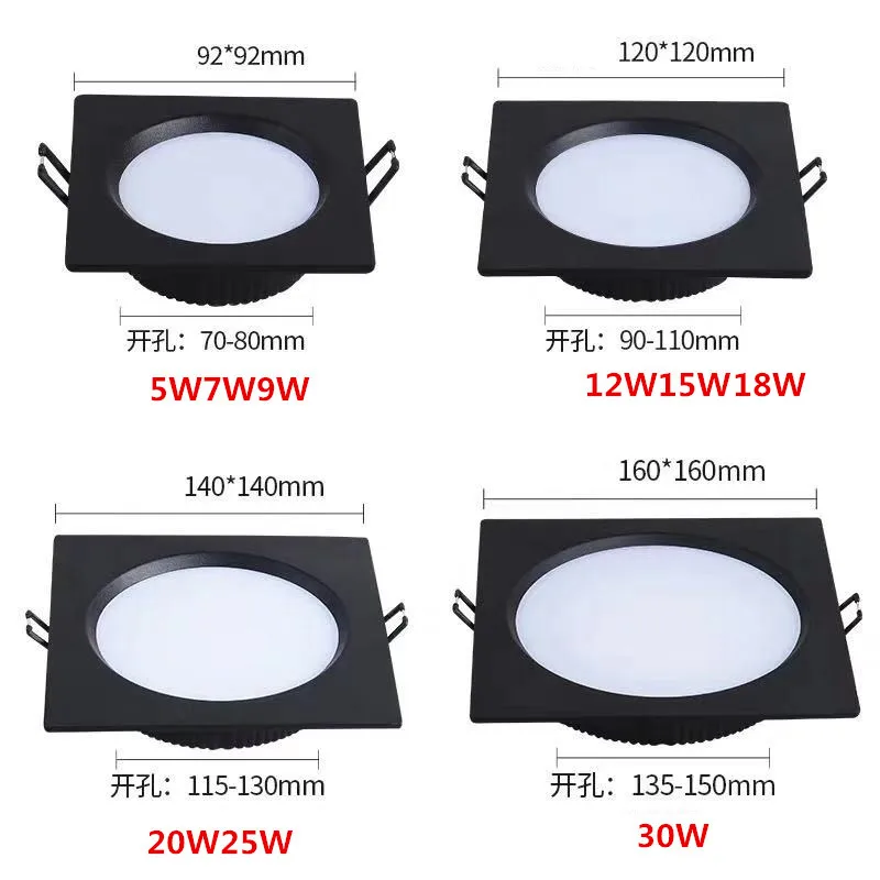 Квадратный светодиодный Светильник направленного света, встраиваемый потолочный светсветильник льник, ультра яркий, 5 Вт, 7 Вт, 9 Вт, 12 Вт, 15 Вт, 18 Вт, 220 В